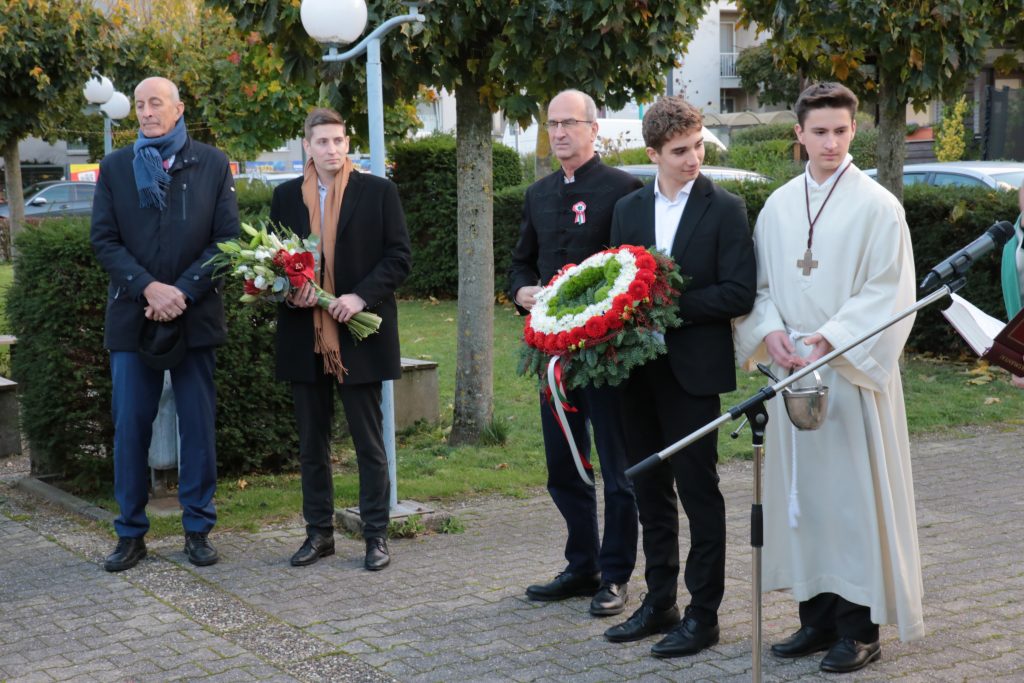 A kopjafánál a frankfurti magyar közösség, illetve a düsseldorfi magyar főkonzulátus részéről koszorú elhelyezésével tisztelegtek a hősök előtt.