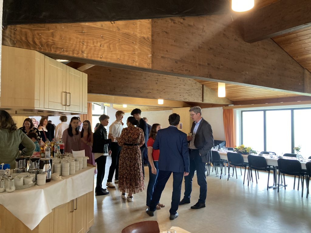 A szentmise előtti napon – szombaton – a frankfurti magyar közösség több lelkes tagja összegyűlt a bensheimi templom mellett lévő közösségi térben, ahol elvégezték a másnapi ünnepi fogadáshoz szükséges tennivalókat: a terembe hosszú asztalsorokat rendeztek be a vendégseregnek; a bérmálkozóknak, illetve az egyházi elöljáróknak a terem központi részére készítették elő a főasztalt. A nagy számú segítő kéznek köszönhetően, amíg egyesek a termet rendezték, addig néhányan voltunk, akik az ünnepi ebédhez szükséges hozzávalókat készítettük elő: ötven kiló húst, illetve hagymát aprítottunk, aminek a jó hangulatú beszélgetésnek hála, igen hamar a végére értünk.