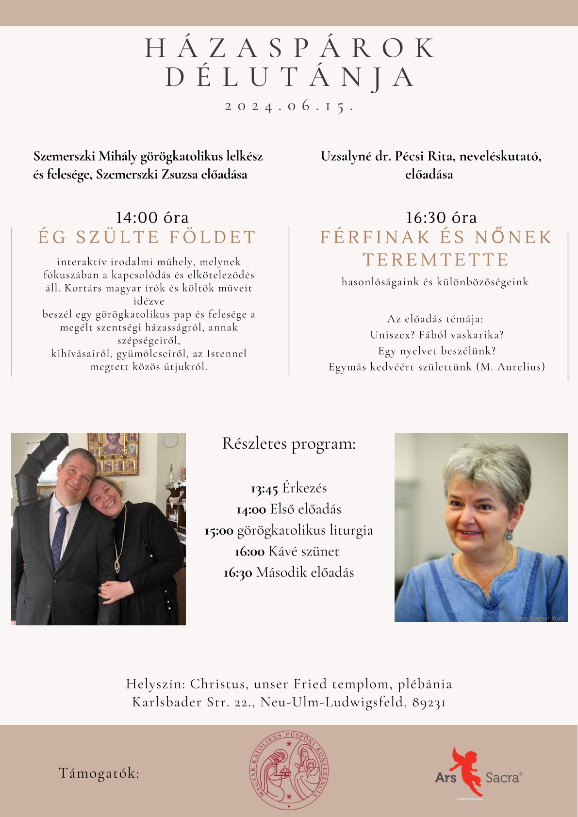 Kedves BUOD-tagok! Nagy szeretettel várunk benneteket is a hétvégén Böjte Csaba testvér látogatására Münchenbe. Szombat este a Magyar Katolikus Misszión lesz egy elmélkedés 18:00 órakor, vasárnap 11:00 órakor pedig Csaba testvér celebrál szentmisét. Címek: Magyar Katolikus Misszió: Oberföringer Str. 40, 81925 München Szentmise: St. Elisabeth Kirche, Breisacherstr. 9/a, 81667 München […]