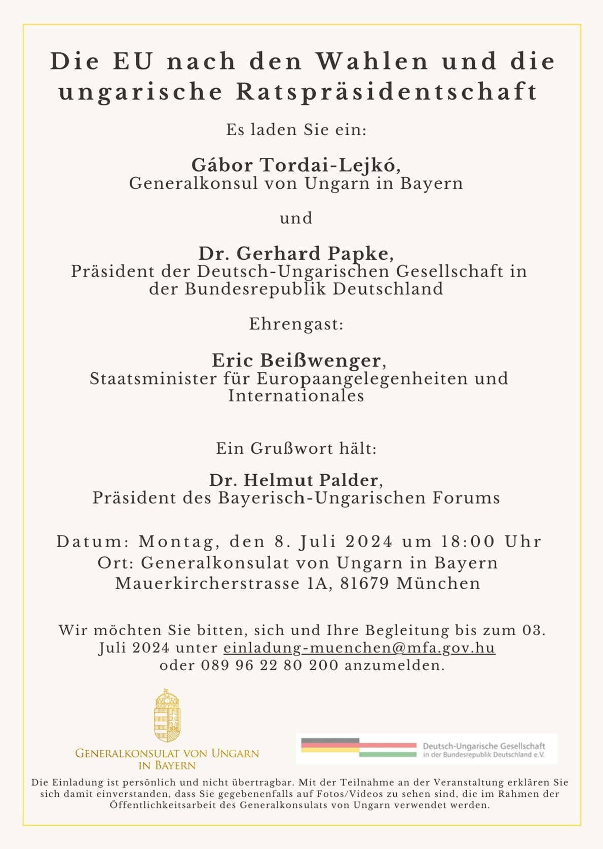 Liebe Mitglieder, Das Bayerisch-Ungarische Forum lädt herzlich ein zum Sommerkonzert mit Henrik Papp (Violoncello) und Péter Méri (Klavier) 🗓 Samstag, 26. Juli 2025, 18:00 Uhr📍 Konzertsaal der Jugendmusikschule Gräfelfing (2. OG)Würmstraße 3, 82166 Gräfelfing Auf dem Programm stehen Werke u. a. von J.S. Bach, F. Chopin und R. Strauss. 🎟 Der Eintritt ist […]