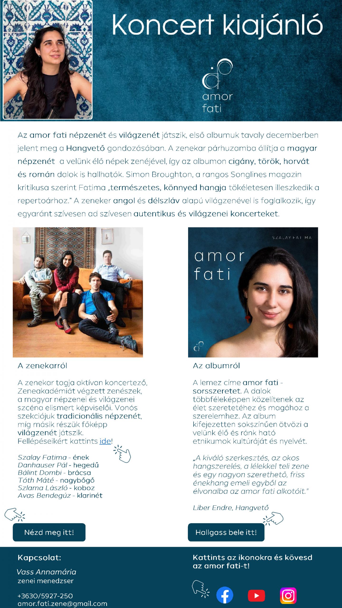 Kedves Egyesületi Vezetők! Az amor fati zenekar érkezik Németországba!Április 10-én Ingolstadtba, április 11-én Münchenbe koncerteznek! A zenekar magyar népzenét és világzenét játszik, a lemezük felkerült a World Music Charts 2024-es listájára. Hazai és külföldi fesztiválokon koncerteznek, tavasszal és ősszel a Magyar Zene Házában is lehet találkozni […]