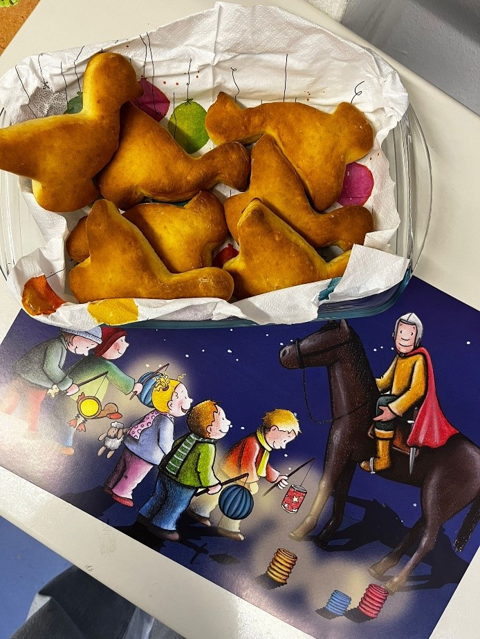 Szent Márton napja alkalmából a két óvodás csoport, kicsik és nagyok közösen dolgozták fel ennek a jeles napnak a történetét. Bár a német óvodákban minden évben megemlékeznek erről az ünnepről, fontosnak tartottuk, hogy a gyerekek a különböző hagyományokat és az ezekhez kötődő fogalmakat magyarul is megismerjék.