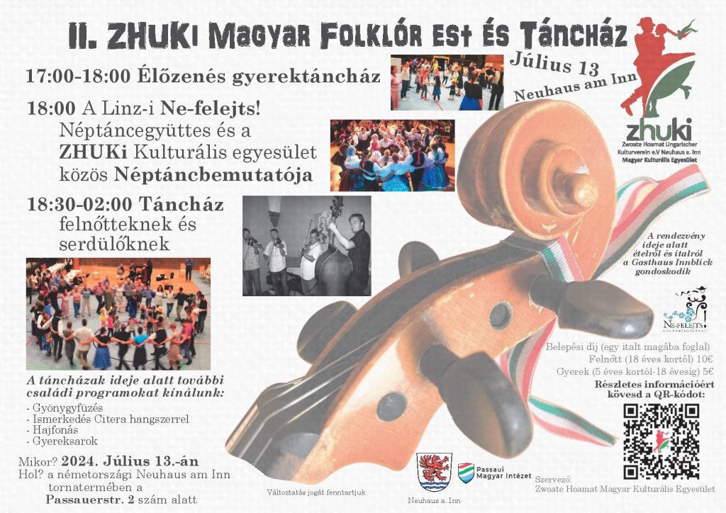 A ZHUKi neuhausi Magyar Kulturális egyesület (Zwoate Hoamat Ungarischer Kulturverein e.V. – Neuhaus am Inn) szeretettel meghív minden érdeklődőt az egynapos Kalotaszegi Tánctáborra, amelyet a II. ZHUKi Folklórest – Táncház koronáz meg. Itt lehetőség nyílik a nap folyamán tanultakat a gyakorlatban is kipróbálni.