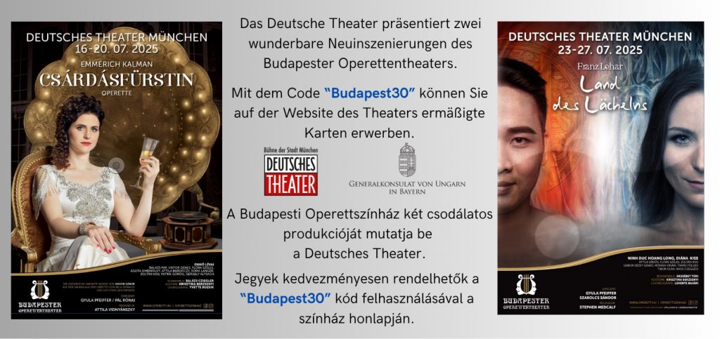 Az alábbiakban szeretnénk figyelmébe ajánlani a Budapesti Operettszínház vendégszereplését Münchenben, amelyre az alábbi kóddal, kedvezményes jegyekhez lehet jutni.