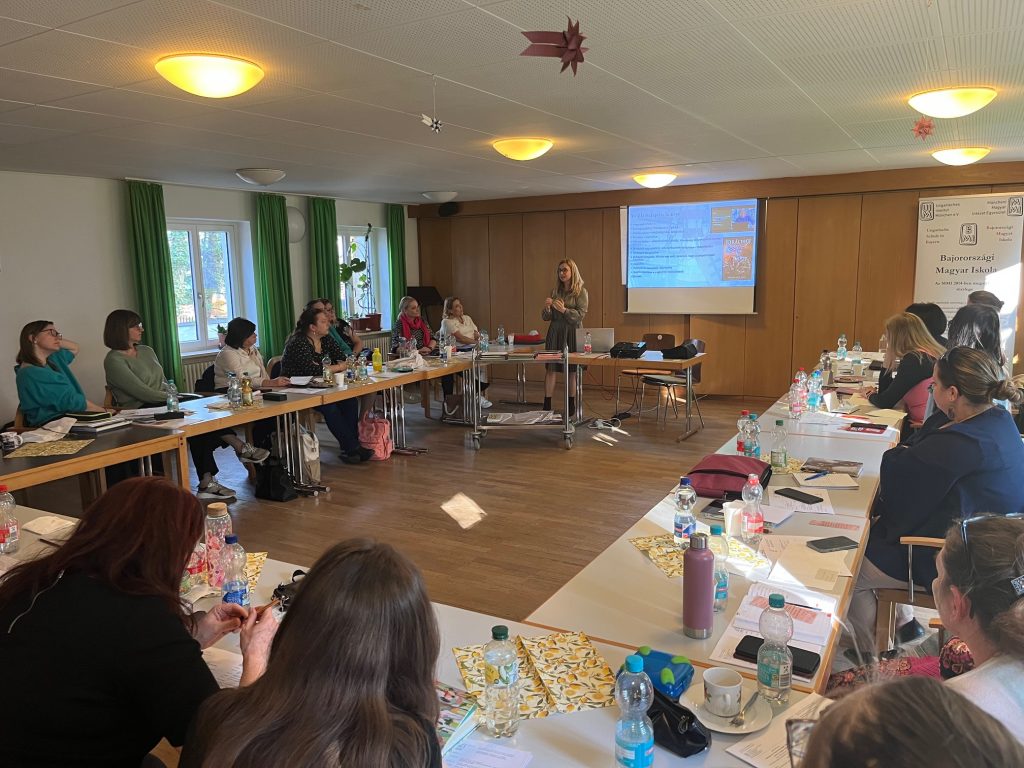 .• Incze Izabella (Burghauseni Magyar Iskola és Óvoda vezetője) a kulturális és történelmi események felsőtagozatos megemlékezéseiről osztotta meg tapasztalatait. Sajnos a hétvégi magyar iskolákban ritka a 15 év feletti tanuló.  Izabellának mégis sikerül ott tartani ezt a korosztályt is, s ehhez adott hasznos tippeket, ötleteket. Előadása nagyon inspiráló volt.